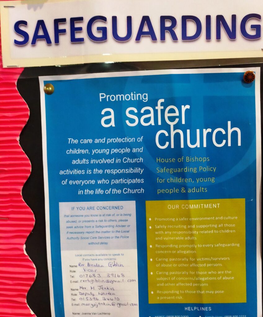 We take very seriously our responsibility to ensure that children or vulnerable people of any age are kept safe in any aspect of church life. Anyone who has concerns, for themselves or for anyone else, is urged to get help by contacting one of the following